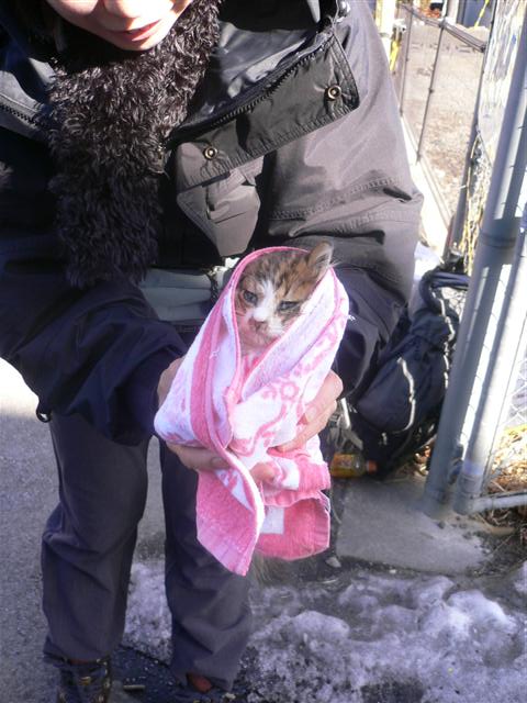 10 室さんから子猫を預かり、だっこしながら撮った写真 |