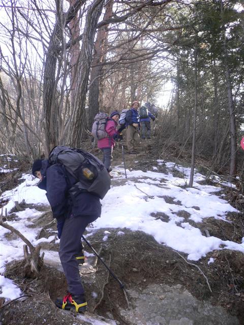 | 07 高度を上げると、北斜面の登山道は雪だらけになった。 |