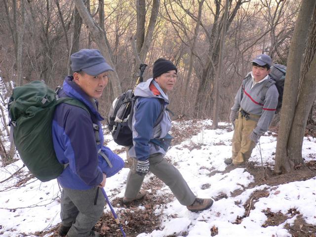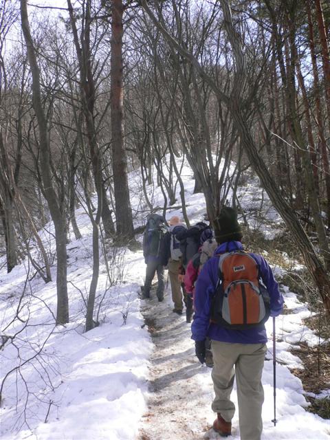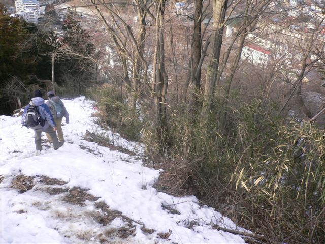 14 下山道にも雪がある。 |