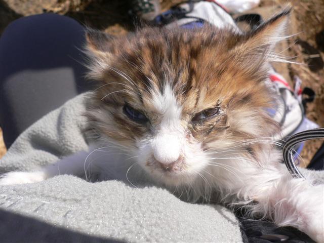 | 21 登山道に子猫を放すと、みんなの後をしっかり着いてくる。 |