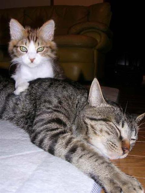 | 05 室リーダーの胸の中で気持ち良さそうに眠る子猫 |